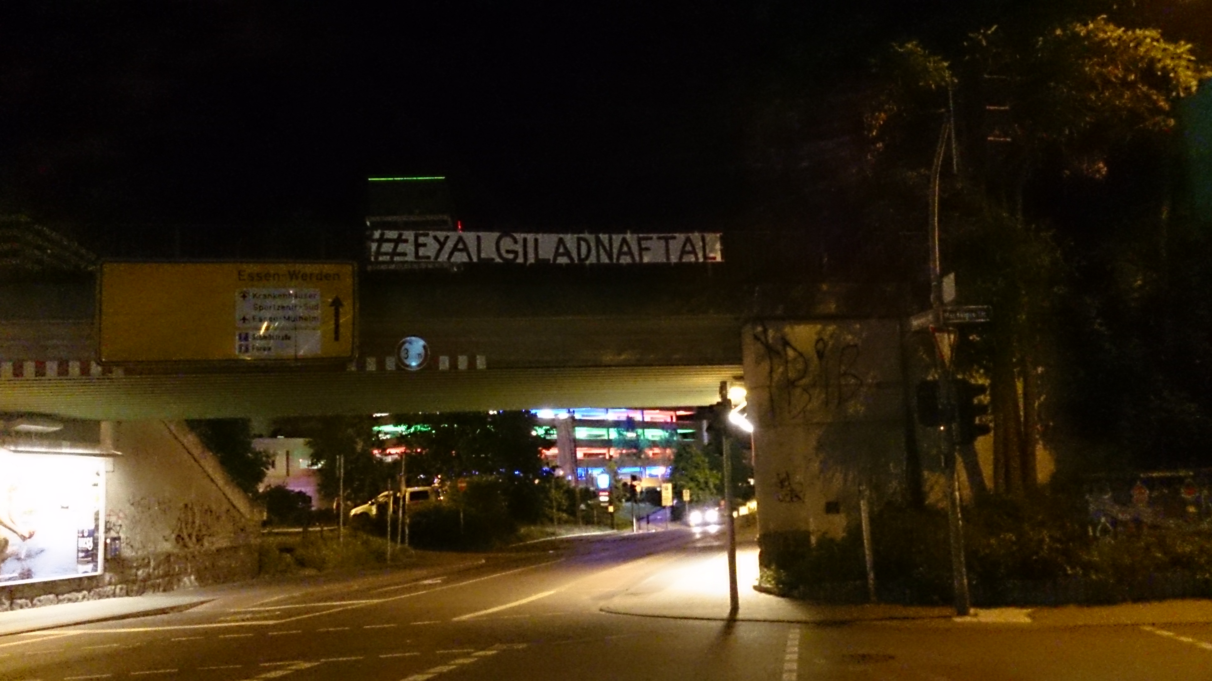 Auch an zentralen Stellen in den Nachbarstädten Oberhausen und Mülheim wurden Spruchbänder zur Erinnerung an die Situation der Entführten gesichtet: