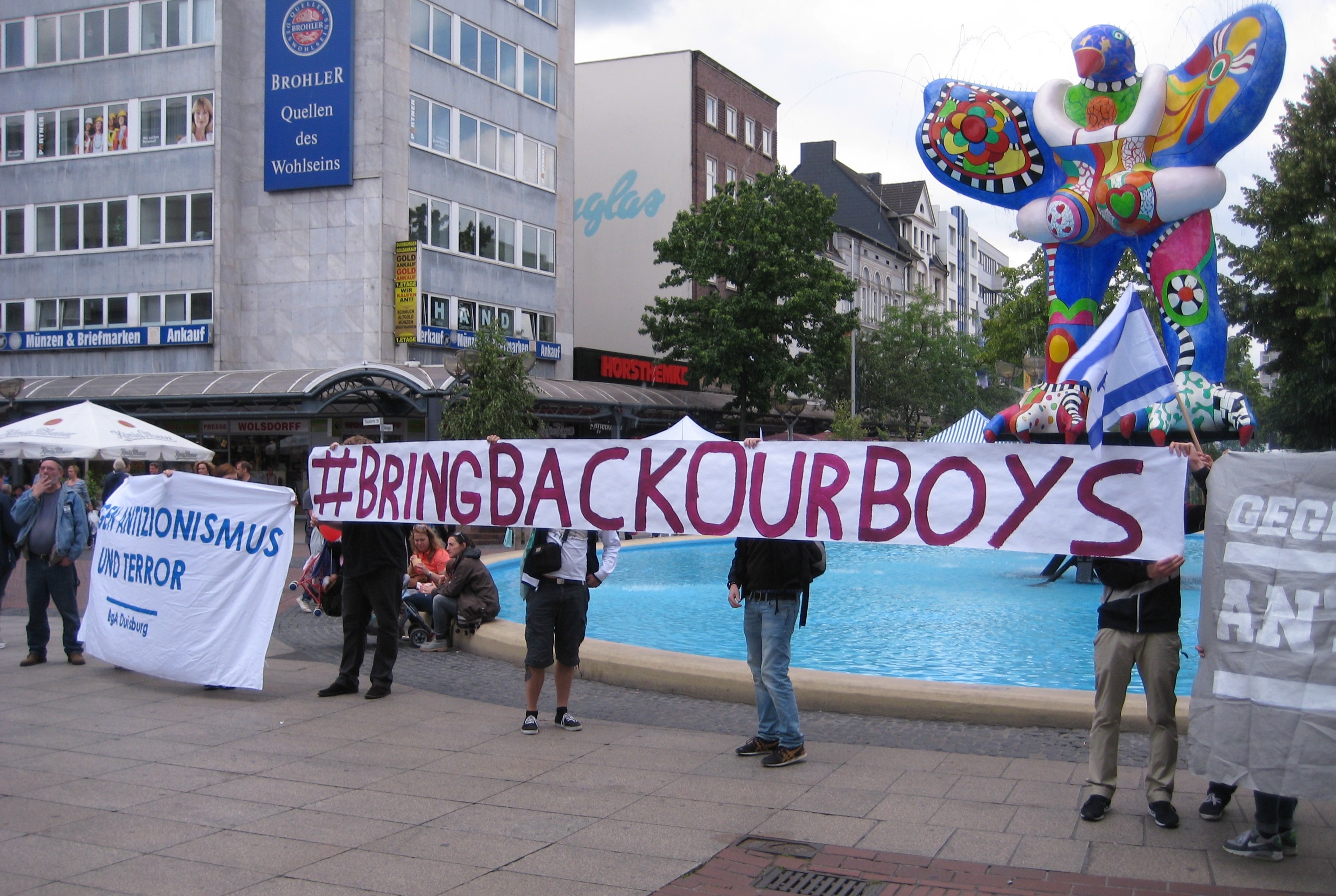 Am Samstag haben wir mitten in Duisburg auf das Schicksal der drei von palästinensischen Terroristen entführten Jugendlichen Eyal, Gilad und Naftali aufmerksam gemacht. Bring back our boys!